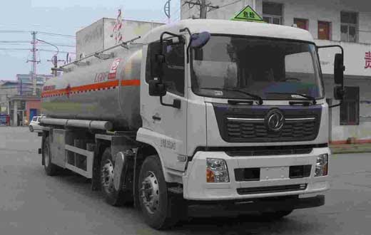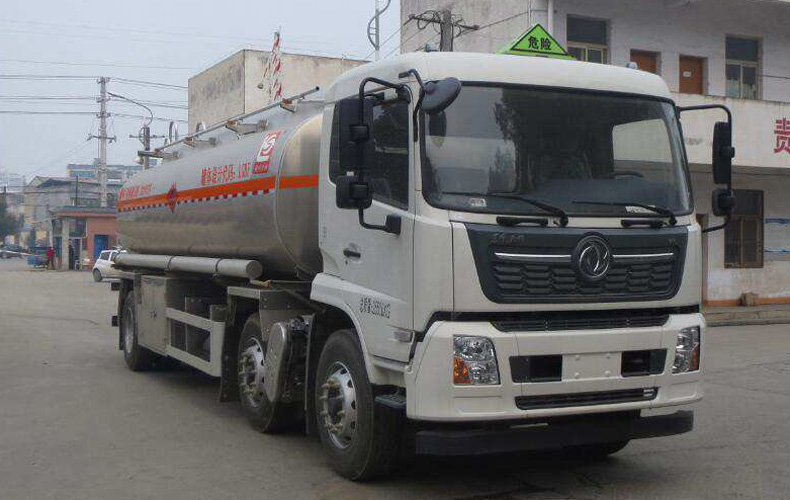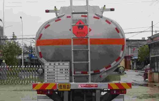 罐體有效容積:22.0立方米,危險貨物運輸車輛的類型為FL型,介質:汽油;類項號:3;罐體尺寸(長×長軸×短軸)(mm)為:7550×2300×1600,7450×2400×1550;僅采用1995+5000mm軸距;側、后防護裝置材料材質:Q235B,側、后防護均采用螺栓連接,后防護裝置斷面尺寸為(mm):80×150,后部防護離地高度:500mm;隨底盤選裝駕駛室,選裝箱門樣式;安裝具有衛星定位功能的行駛記錄儀,排氣管前置,安裝前盤制動器和限速裝置,限速80km/h,僅采用底盤子午線輪胎;ABS型號/生產廠家:3631010-C2000/東科克諾爾商用車制動系統(十堰)有限公司;發動機型號及油耗值(L/100km)為:B6.2NS6B230(36.1),B6.2NS6B245(36.1). 該車后軸為采用空氣懸架.