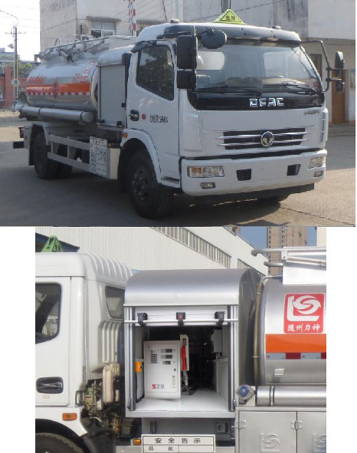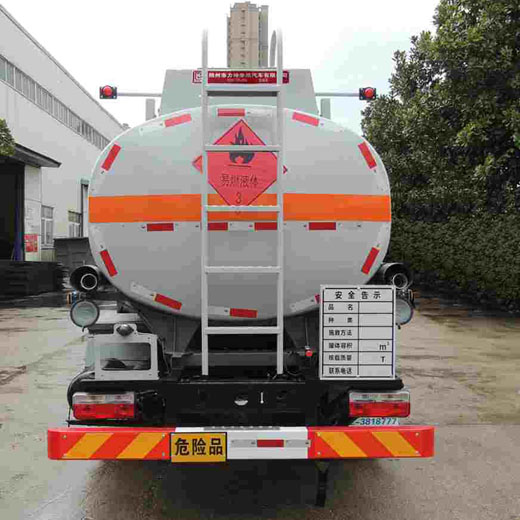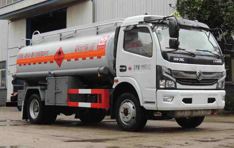 罐體有效容積:8.15立方米,危險貨物運輸車輛的類型為FL型,類項號:3;加油裝置下置時,罐體尺寸(長×長軸×短軸)(mm)為:4700×1750×1250;當加油裝置上置時,罐體尺寸(長×長軸×短軸)(mm)為:3800×2000×1350;僅采用3800mm軸距;隨底盤選裝駕駛室,選裝加油裝置上置,選裝箱門樣式;側、后防護裝置材料材質:Q235B, 側、后防護均采用螺栓連接,后防護裝置斷面尺寸為(mm):80×150,后部防護離地高度:430mm;安裝具有衛星定位功能的行駛記錄儀,排氣管前置,安裝前輪盤式制動器及限速裝置,限速80km/h,僅采用底盤子午線輪胎;ABS型號/廠家:ABS型號:ABS/ASR-24V-4S/4M,廠家:襄陽東風隆誠機械有限責任公司;