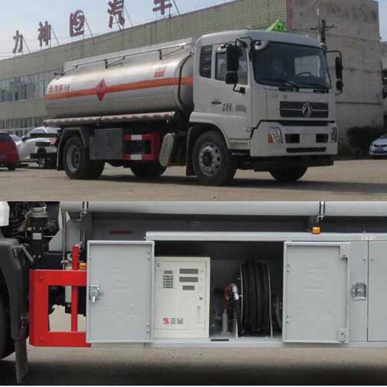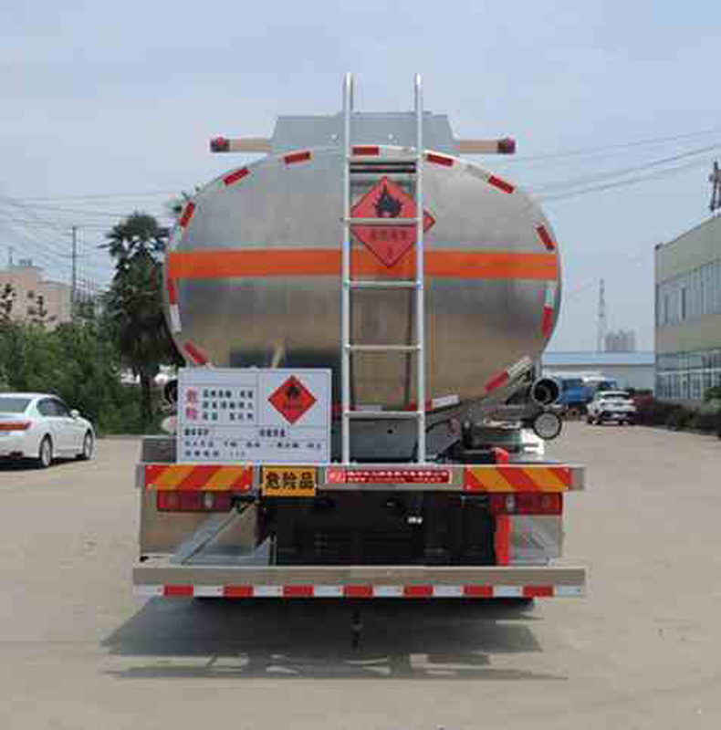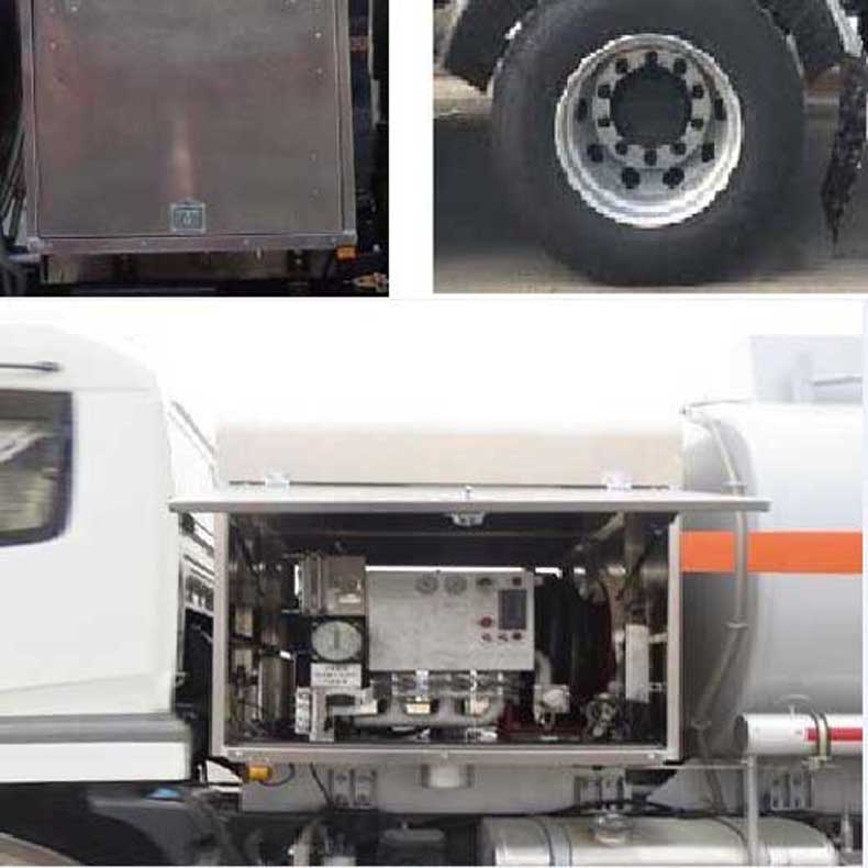 罐體有效容積:13.4立方米,危險貨物運輸車輛的類型為FL型,運輸介質(zhì):航空煤油.類項號:3;加油裝置上置時,罐體尺寸(長×長軸×短軸)(mm)為:4650×2300×1600;當(dāng)加油裝置下置時,罐體尺寸(長×長軸×短軸)(mm)為:5600×2100×1450(mm).軸距/前懸/后懸對應(yīng)關(guān)系為(mm):4700/1430/2470,4700/1400/2500,5000/1430/2170,5000/1400/2200;隨底盤選裝駕駛室,選裝加油機下置及專用裝置照片,選裝擋泥板樣式及加油機上置箱門和專用裝置照片;側(cè)、后防護(hù)裝置材料材質(zhì):Q235B,側(cè)、后防護(hù)均采用螺栓連接,后防護(hù)裝置斷面尺寸為(mm):80×150,后部防護(hù)離地高度:500mm;安裝具有衛(wèi)星定位功能的行駛記錄儀,排氣管前置,安裝前輪盤式制動器和限速裝置,限速80km/h,僅采用底盤子午線輪胎;ABS系統(tǒng)型號為4460046300,生產(chǎn)企業(yè)為威伯科汽車控制系統(tǒng)(中國)有限公司.加油裝置型號/生產(chǎn)企業(yè):CS20D1110F/正星科技有限公司,80YHCB-60/山東博山齊魯油泵廠,YHCB-1000/5-A,YHCB-1000/5B,YHCB-300/3-B-L/永嘉三江石油機械廠. 該車后軸為采用空氣懸架.
