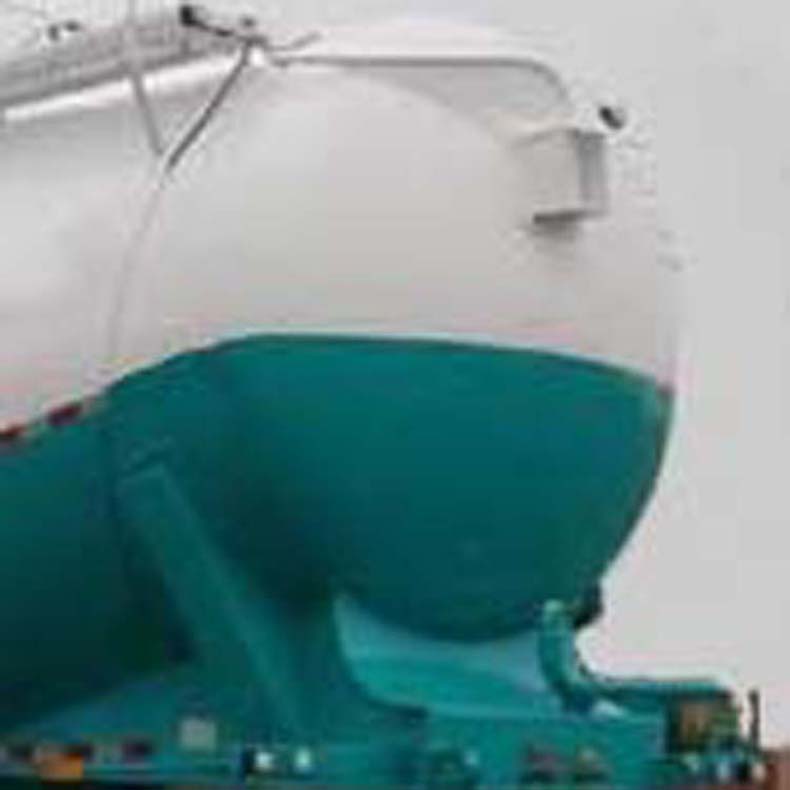 頂部封閉不可開槽,后部不可開啟.罐體有效容積:40.3立方米.介質(zhì):粉煤灰,密度820千克/立方米.罐體外形尺寸:長8850毫米,直徑2500毫米.罐體*大截面高度3100毫米,*大截面寬度2500毫米.選裝不帶空壓機組.不帶空壓機組時整備質(zhì)量為7800kg,額定載質(zhì)量為32200kg.該車型選裝空氣懸架和擋泥板.ABS生產(chǎn)廠家:威伯科汽車控制系統(tǒng)(中國)有限公司,型號:4005000810 4S2M.防護材料均采用Q235B,側(cè)防護用螺栓連接,后防護用焊接連接,后部防護裝置斷面尺寸(寬×高)50×120(mm),后部防護離地高度:500mm.