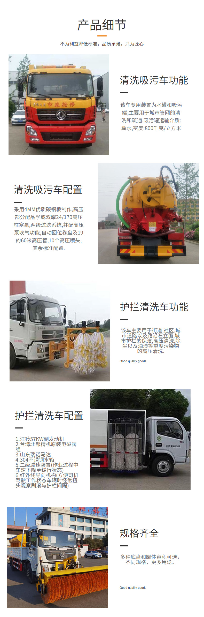 清洗吸污車功能特點: