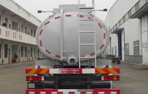 該車型為非;愤\輸車,由罐體、泵、供液系統等專用裝置組成,主要用于向井場運送液體并配合壓井作業;罐體有效容積:17立方米,介質:泡沫液;罐體尺寸(長×長軸×短軸)(mm):6900×2300×1600,6800×2050×1450;軸距/后懸對應關系為(mm):4575+1400/2395,4600+1350/2420;側、后防護裝置材質均為:Q235B,側、后防護均采用螺栓連接,后防護裝置斷面尺寸為(mm):80×150,后部防護離地高度:500mm;安裝具有衛星定位功能的行駛記錄儀,隨底盤選裝駕駛室,選裝擋泥板樣式,選裝罐體截面形狀,選裝尾部無供液口;ABS系統控制器生產企業/型號為威伯科(上海)管理有限公司/4460046300;選裝EBS,EBS系統控制器生產企業/型號為威伯科(上海)管理有限公司/EBS3;發動機型號及油耗值(L/100km)為:MC07.27-60(32.1),MC07.31-60(32.1),MC07.34-60(32.1).