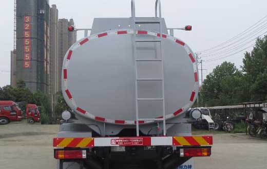 該車型為非危化品運(yùn)輸車,由罐體、泵、供液系統(tǒng)等專用裝置組成,主要用于向井場運(yùn)送液體并配合壓井作業(yè);罐體有效容積:18立方米,介質(zhì):洗井泡沫液;罐體尺寸(長×長軸×短軸)(mm):6800×2200×1550;僅采用4375+1400mm軸距;側(cè)、后防護(hù)裝置材質(zhì)均為:Q235B,側(cè)、后防護(hù)均采用螺栓連接,后防護(hù)裝置斷面尺寸為(mm):80×150,后部防護(hù)離地高度:500mm;隨底盤選裝駕駛室,選裝尾部帶供液口,選裝箱門;安裝帶衛(wèi)星定位功能的行駛記錄儀;ABS系統(tǒng)生產(chǎn)廠家及型號分別為:西安正昌電子股份有限公司(ZQFB-V);發(fā)動機(jī)型號及油耗值(L/100km)為:WP8.320E61