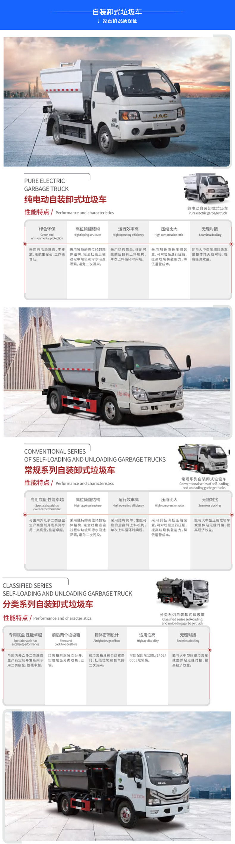 垃圾車(chē)價(jià)格_純電動(dòng)垃圾車(chē)_江淮小型純電動(dòng)自裝卸式垃圾車(chē)★13908669111★產(chǎn)品名稱CSC5041ZZZJHBEV型純電動(dòng)自裝卸式垃圾車(chē),采用江淮HFC1041EV5Z底盤(pán)改裝而成,該車(chē)主要專用裝置為垃圾箱、翻轉(zhuǎn)上料裝置、舉升卸料裝置、填壓機(jī)構(gòu)、液壓系統(tǒng)等,主要用于垃圾收集清運(yùn)。卸料方式為后卸式。整車(chē)美觀大方,全液壓配置多重保護(hù)能與大中型壓縮垃圾車(chē)或整體站無(wú)縫對(duì)接,提高經(jīng)濟(jì)效益。更多垃圾車(chē)盡在:m.siski.cn