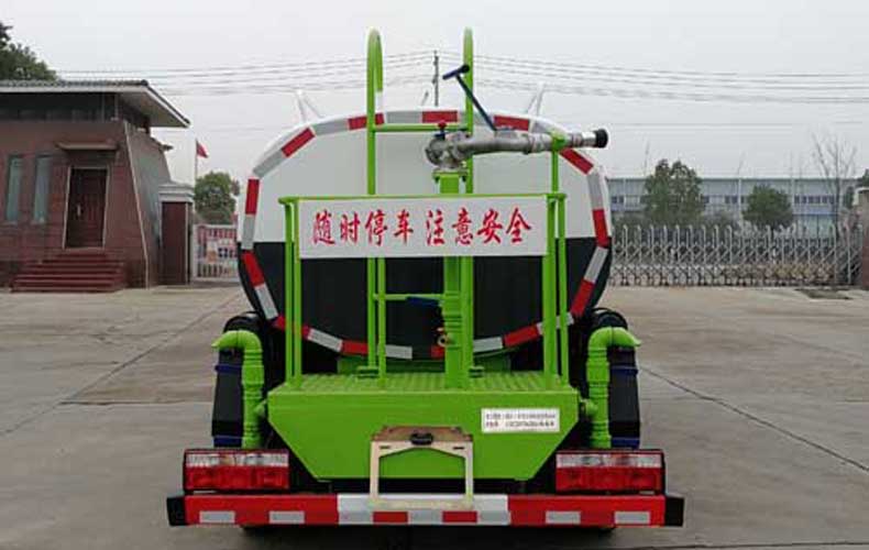 消防灑水車安裝消防車專用消防泵、消防炮、消防取力器。罐體后帶工作平臺,平臺上安裝綠化灑水炮,灑水炮可全方位旋轉,帶前沖后灑,帶側噴,可連續調成直流狀、霧狀、大雨、小雨、毛毛雨,帶安全護欄。罐體頂部安裝消防水炮。帶消防接口,可通過消防栓進水,帶自流閥,消防綠化卷盤。