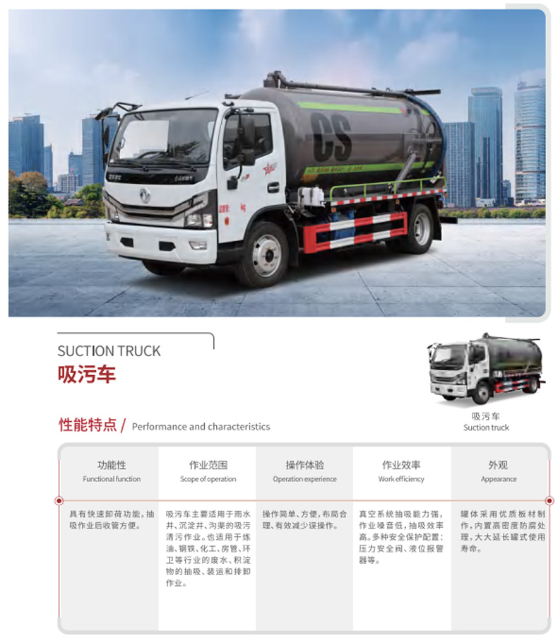 吸污車主要適用于雨水井、沉淀井、溝渠的吸污清污作業。也適用于煉油、鋼鐵、化工、房管、環衛等行業的廢水、積淀物的抽吸、裝運和排卸作業。
